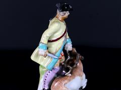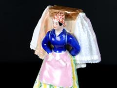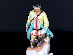 VİYANA İMALAT DAMGALI. KÜFE TAŞIYAN KIZ. EL BOYAMA ALTIN YALDIZ DEKORLU. H 9 CM. AVCI. EL BOYAMA. H 8 CM.
