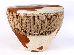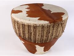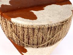 20 YY. AHŞAP VE HAYVAN POSTUNDAN MAMÜL. YAN ÖRGÜLERİ DERİ. ÇAP 74 CM. H 58 CM.
