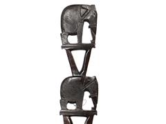 20 YY. AFRİKA ETNİK SANATI. KAZIMA VE OYMA İŞÇİLİKLİ. ABANOZDAN MAMÜL. TUTAMAK KISMI FİL FİGÜRLÜ. 103X18 CM.