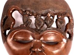20. YY. AFRİKA ETNİK SANATI. KAZIMA VE OYMA İŞÇİLİKLİ. LEYLEK VE MAYMUN FİGÜRLÜ. 56X50 CM.