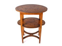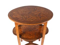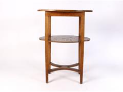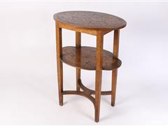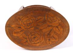 TÜM GÖVDE KAZIMA İŞÇİLİKLİ GÜLLERLE DEKORLU. ORTADAN BAĞLANTILI DÖRT AYAK ÜZERİ OVAL FOMLU TABLALI. 60X42,5 CM. H 80 CM.