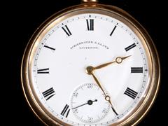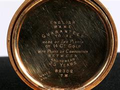 İNGİLİZ. SCHİERWATER AND LLOYD LİVERPOOL. PORSELEN KADRANLI. ROMEN RAKAMLI VE SANİYE GÖSTERGELİ. ÜSTTEN KURMALI. 14 AYAR ALTIN KAPLAMA. MEKANİZMA. W.ALTHAM ÇAP 50 MM. SERİ NO 89302.