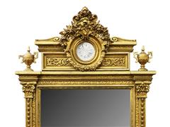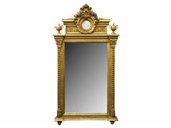 FRANSIZ. DİKDÖRTGEN FORMLU, SÜTUNLU ÇERÇEVE KABARTMA FİGÜRLERLE DEKORLU. TAÇ KISMI KABARTMA ÇİÇEKLERLE SARMALANMIŞ YUVARLAK AYNALI İKİ KENARLARI KUPALARLA DEKORLU. 190X104 CM.