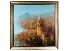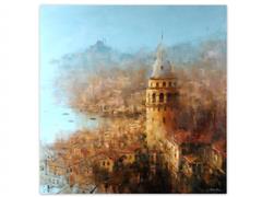 GALATA KULESİ. TUAL ÜZERİ YAĞLIBOYA. İMZALI. 90X90 CM.