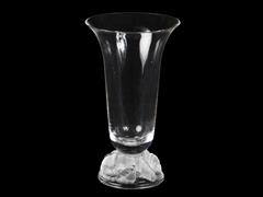 YUVARLAK KAİDE ÜZERİ KABARTMA ÇİÇEKLİ, YUKARI DOĞRU GENİŞLEYEN AĞIZLI. H 27 CM. ÇAP 15,5 CM.