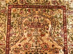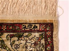 HEREKE. RENKLİ ÇİÇEK MOTİFLERİ VE ESKİ TÜRKÇE YAZILI VE İMZALI. CM2 YE 10X10 İLMEK. 90X62,5 CM.