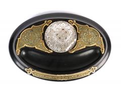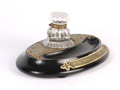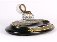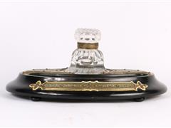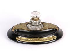 FRANSIZ. OVAL AHŞAP KAİDE ÜZERİNDE TEK KRİSTAL HAZNELİ. ÇOK ZARİF İŞÇİLİKLİ PİRİNÇ APLİKELİ. 33X23 CM. H 15 CM.