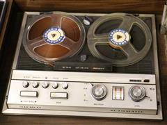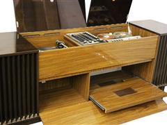 ALMAN. DUAL 1016 PİKAP, RADYO. GRUNDİG TM 245 DELUXE MAKARALI TEYP. ÖNE AÇILIR KAPAKLI VE PLAK HAZNELİ. ÜSTTEN AÇILIR 2 KAPAKLI. 174X46X82 CM.