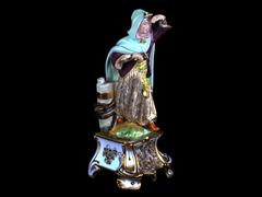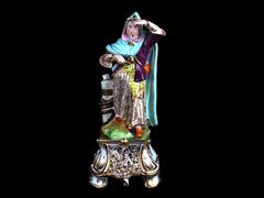 FRANSIZ. 20 YY. KIVRIK AYAKLI. KARE FORMLU KAİDE ÜZERİNDE ORYANTAL FİGÜRLÜ. ALTIN YALDIZ VE EL DEKORLU. H 30 CM.