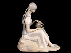 İSPANYA. MIQUEL REQUENA S.A. İMALAT DAMGALI. TESTİLİ KIZ. 24.5X14 CM H 27 CM.