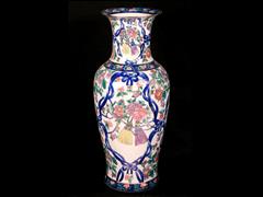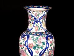 UZAK DOĞU. MUHTELİF EL İŞİ İLE RENKLİ ÇİÇEKLERLE DEKORLU. ÇAP 31 CM. H 93 CM.