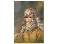KÖYLÜ KIZI. TUAL ÜZERİ YAĞLIBOYA. İMZALI. 70X50 CM.