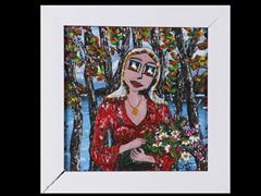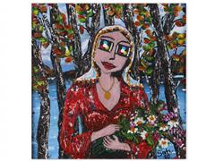 ÇİÇEKLİ KIZ. TUAL ÜZERİ YAĞLIBOYA. İMZALI. 2020 T. 20X20 CM.