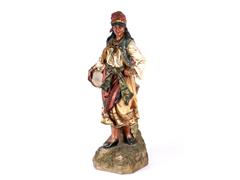 20. YY. İMALAT DAMGALI. TEFLİ KADIN FİGÜRÜ. EL DEKORLU. H 47 CM.