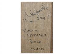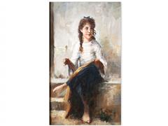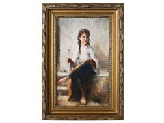 RUS EKOLÜ. DİKİŞ DİKEN KIZ. TUAL ÜZERİ YAĞLIBOYA. ARKADA İMZALI. 2001 T. 50X30 CM.