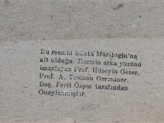 NÜ. KAĞIT ÜZERİ KARIŞIK TEKNİK. İMZASIZ. 35X25 CM. PROF.HÜSEYİN GEZER, PROF.A.TEOMAN GERMANER, DOÇ.FERİT ÖZŞEN TARAFINDAN ZÜHTÜ MÜRİDOĞLU NA AİT OLDUĞU ONAYLANMIŞTIR.