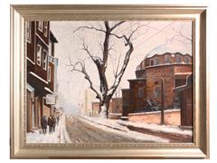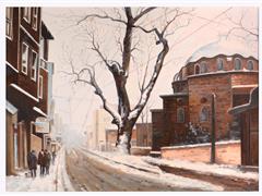 KARLI SOKAK. TUAL ÜZERİ YAĞLIBOYA . İMZALI. 60X80 CM.