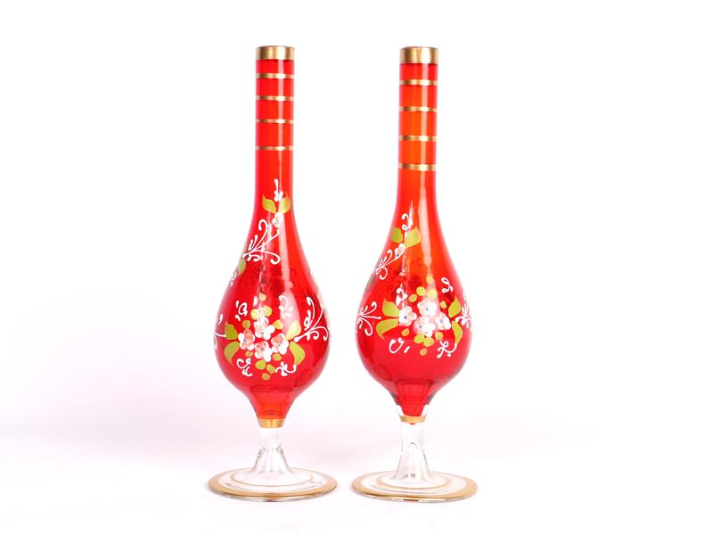 KIRMIZI GÖVDE ÜZERİ RENKLİ ÇİÇEKLER İLE EL DEKORLU. H 27,5 CM.