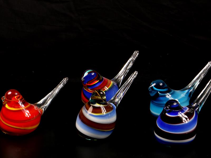 MUHTELİF RENKLİ. ŞEFFAF KUYRUKLU, KUŞ FİGÜRLERİ. H 7 CM. UZ 14 CM.