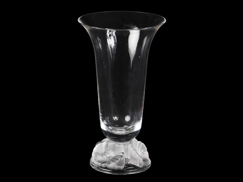 YUVARLAK KAİDE ÜZERİ KABARTMA ÇİÇEKLİ, YUKARI DOĞRU GENİŞLEYEN AĞIZLI. H 27 CM. ÇAP 15,5 CM.