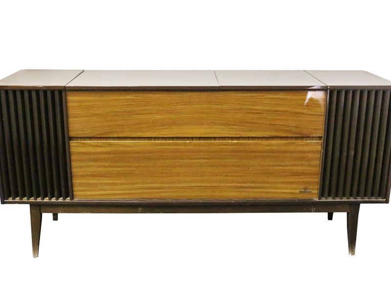 ALMAN. DUAL 1016 PİKAP, RADYO. GRUNDİG TM 245 DELUXE MAKARALI TEYP. ÖNE AÇILIR KAPAKLI VE PLAK HAZNELİ. ÜSTTEN AÇILIR 2 KAPAKLI. 174X46X82 CM.