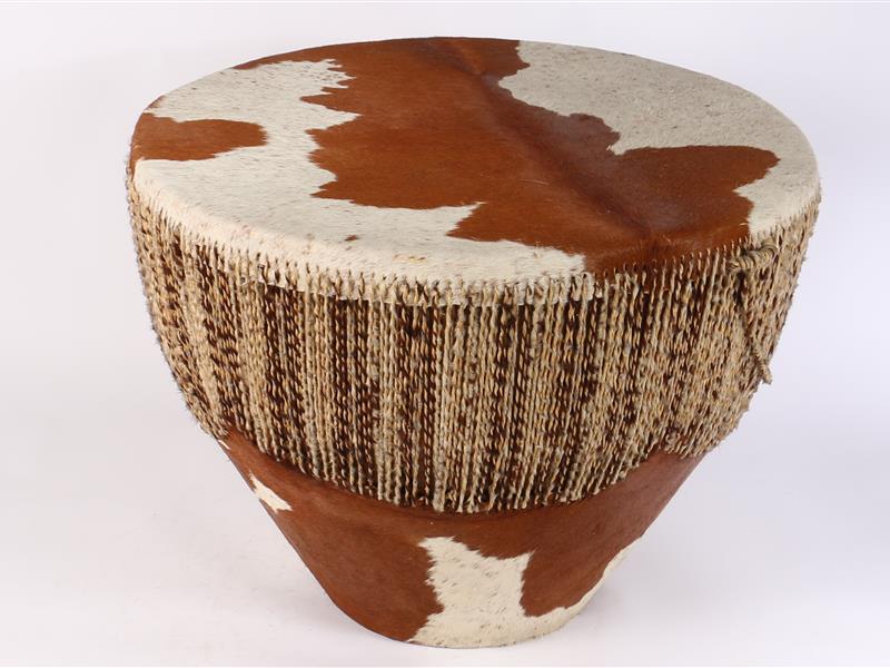20 YY. AHŞAP VE HAYVAN POSTUNDAN MAMÜL. YAN ÖRGÜLERİ DERİ. ÇAP 74 CM. H 58 CM.