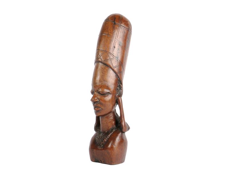 20. YY. KADIN BÜSTÜ. AFRİKA ETNİK SANATI. KAZIMA VE OYMA İŞÇİLİKLİ. H 33 CM.
