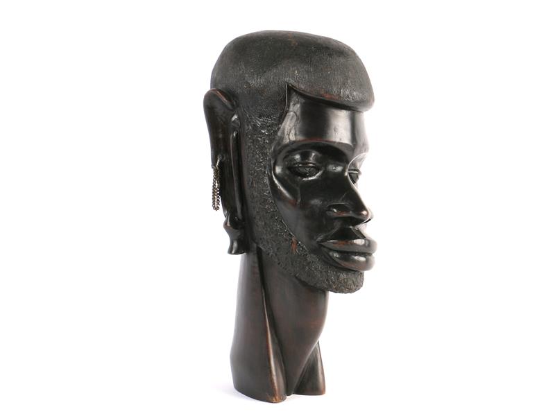 20. YY. ERKEK BÜSTÜ. AFRİKA ETNİK SANATI. KAZIMA VE OYMA İŞÇİLİKLİ. ABANOZ AĞACINDAN MAMÜL. AĞIRLIK 3,66 KG. H 33 CM.