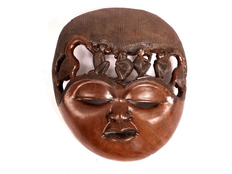 20. YY. AFRİKA ETNİK SANATI. KAZIMA VE OYMA İŞÇİLİKLİ. LEYLEK VE MAYMUN FİGÜRLÜ. 56X50 CM.