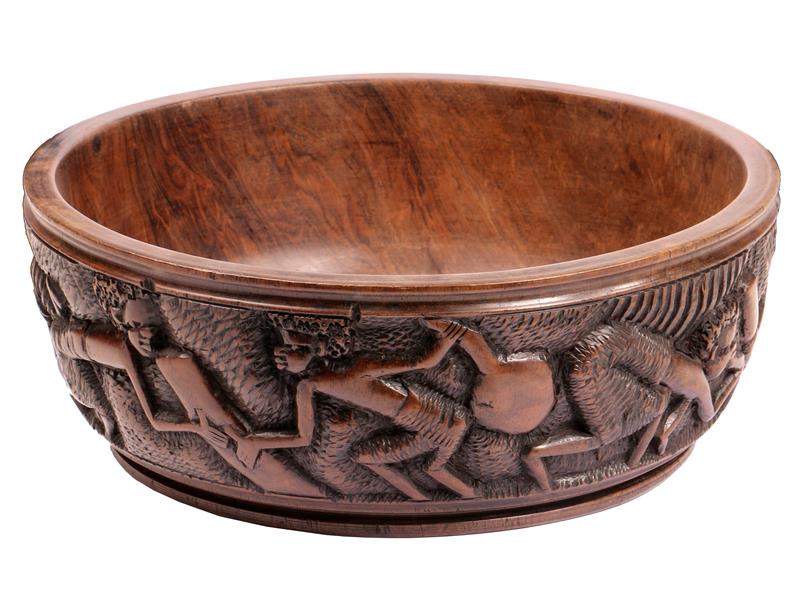 20. YY. AFRİKA ETNİK SANATI. KAZIMA VE OYMA İŞÇİLİKLİ . TÜM GÖVDE AFRİKA YERLİ FİGÜRLERİ İLE DEKORLU. TEPSİ ÇAP 41 CM. H 9 CM. KASE ÇAP 13 CM H 5,5 CM.