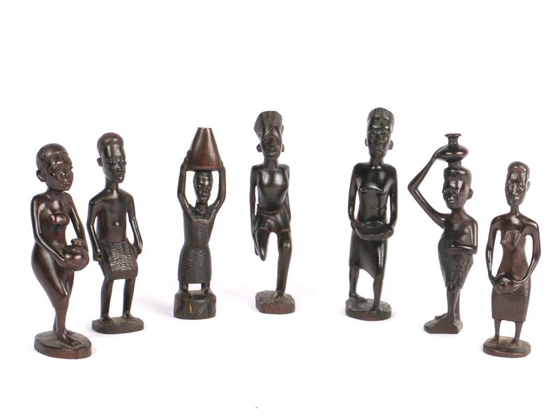 20. YY. AFRİKA ETNİK SANATI. KAZIMA VE OYMA İŞÇİLİKLİ . ABANOZDAN MAMÜL. MAKONDE KABİLESİ. MUHTELİF BOYLARDA. 16-19 CM.