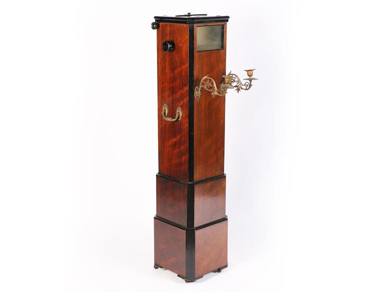19-20. YY. PİRİNÇ ÇİFT TUTAMAKLI VE ÇİFT MUMLUKLU. ALT KISMI TEKERLEKLİ. 124X26X27 CM.