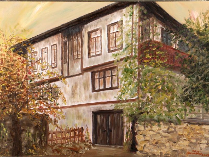 KÖY EVİ. TUAL ÜZERİ YAĞLIBOYA. İMZALI. 2005 T. 50X70 CM.