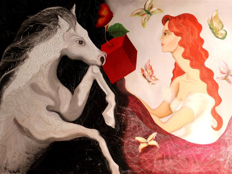 ATLI FİGÜR. TUAL ÜZERİ YAĞLIBOYA. İMZALI. 80X110 CM.