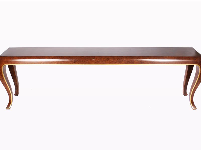 DİKDÖRTGEN FORMLU. DÖRT AYAK ÜZERİ DAR UZUN GÖVDELİ. ALTIN VARAK DEKORLU. 34,5X208X61 CM.