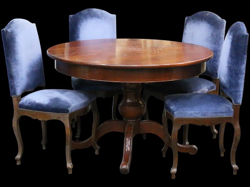 YUVARLAK FORMLU. 2 EK PARÇALI. ÇAP 120 CM. H 78 CM. AÇIK ÖLÇÜ 210X120X78 CM. SANDALYELER KADİFE KUMAŞ KAPLI.