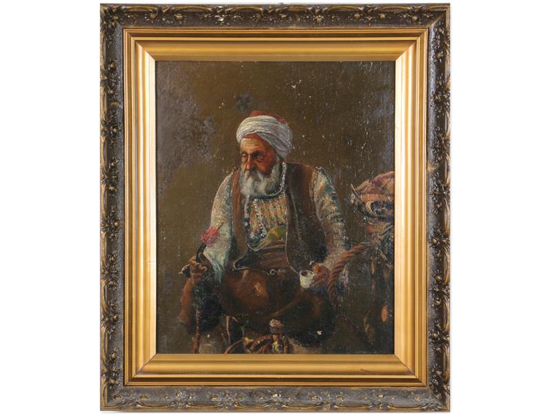 19-20. YY. NARGİLE İÇEN YAŞLI ADAM. TUAL MARUFLE YAĞLIBOYA TABLO. İMZASIZ. 38X31 CM. KOLEKSİYONLUK BİR ORYANTAL TABLO.