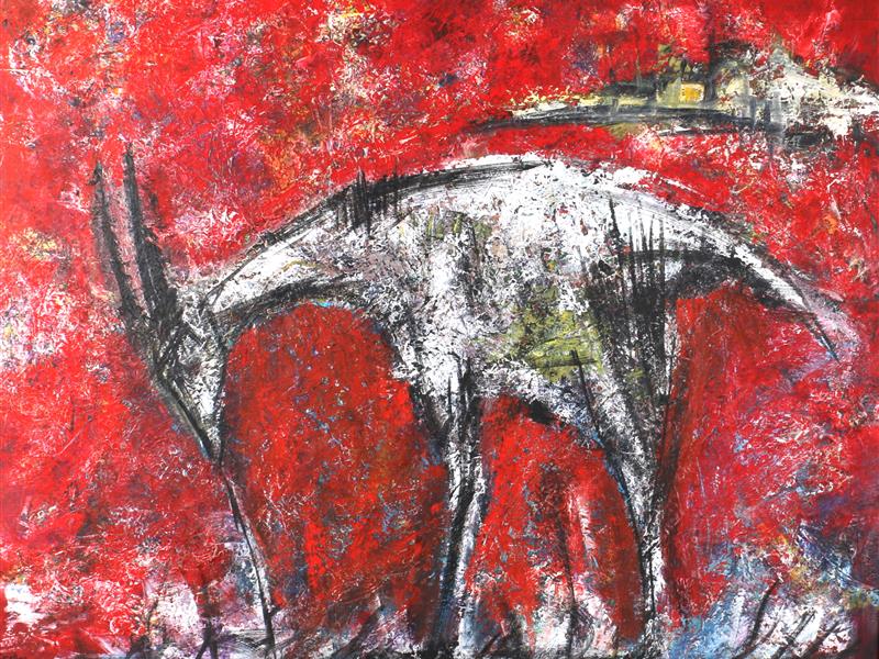 KEÇİ. TUAL ÜZERİ YAĞLIBOYA. İMZALI. 2009 T. 80X100 CM.