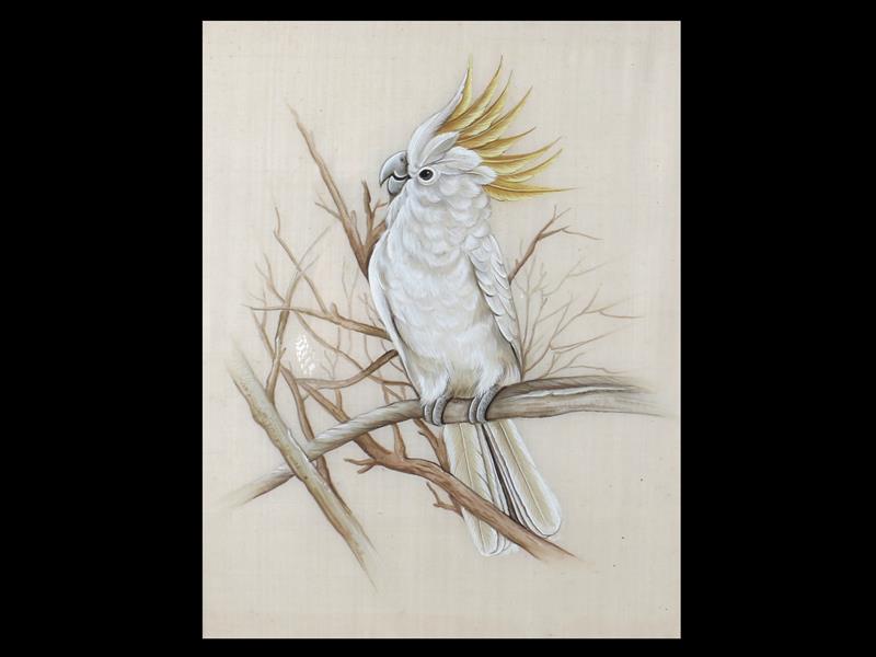 PAPAĞAN. İPEK ÜZERİ YAĞLIBOYA. İMZASIZ. 32X25 CM.