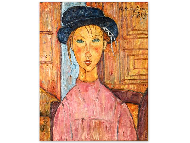ŞAPKALI KIZ. TUAL ÜZERİ YAĞLIBOYA. AMEDEO MODİGLİANİ KOPYASI. İMZALI. 2000 T. 41X33 CM.