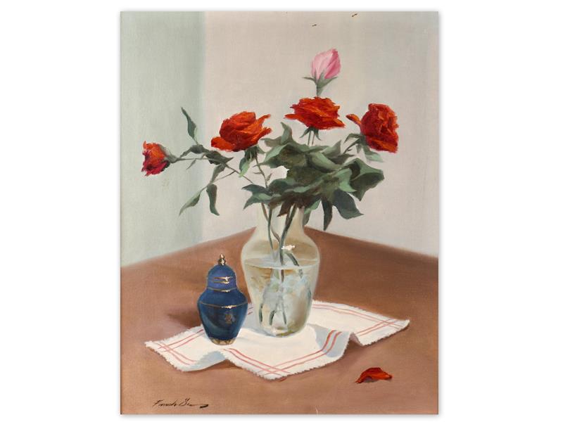 VAZODA ÇİÇEKLER. TUAL ÜZERİ YAĞLIBOYA. İMZALI. 50X40 CM.
