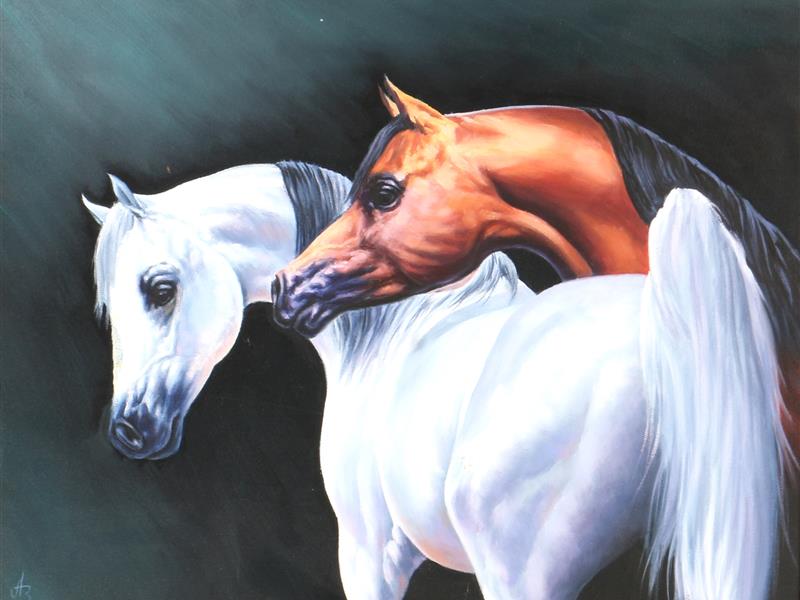 ATLAR. TUAL ÜZERİ YAĞLIBOYA. İMZALI. 40X50 CM.