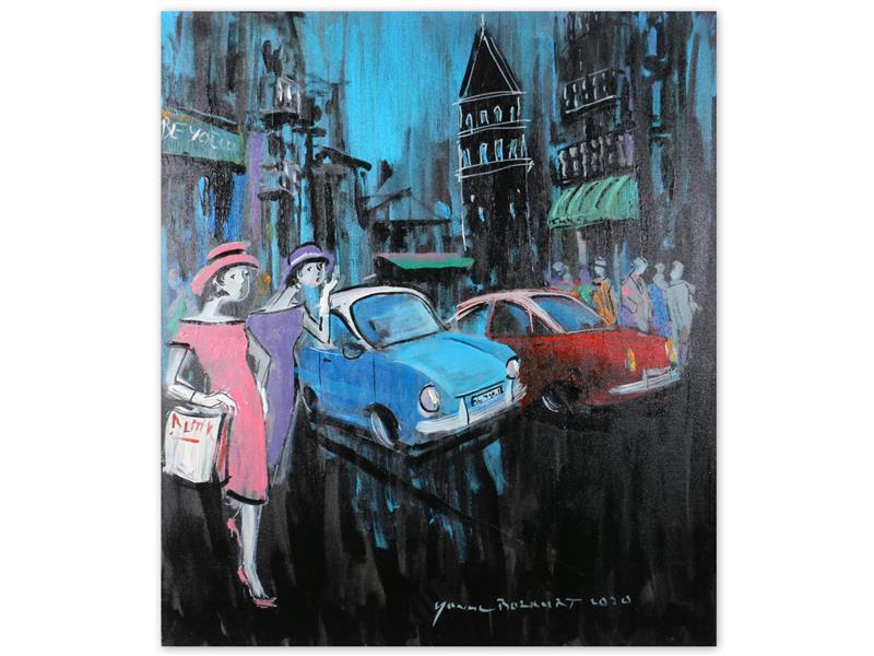 FİGÜRLÜ KOMPOZİSYON. TUAL ÜZERİ YAĞLIBOYA. İMZALI. 2020 T. 80X70 CM.