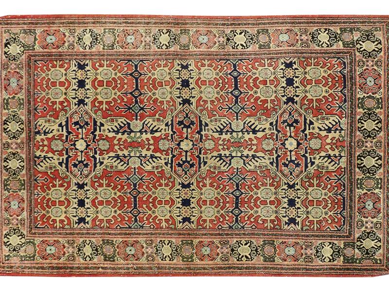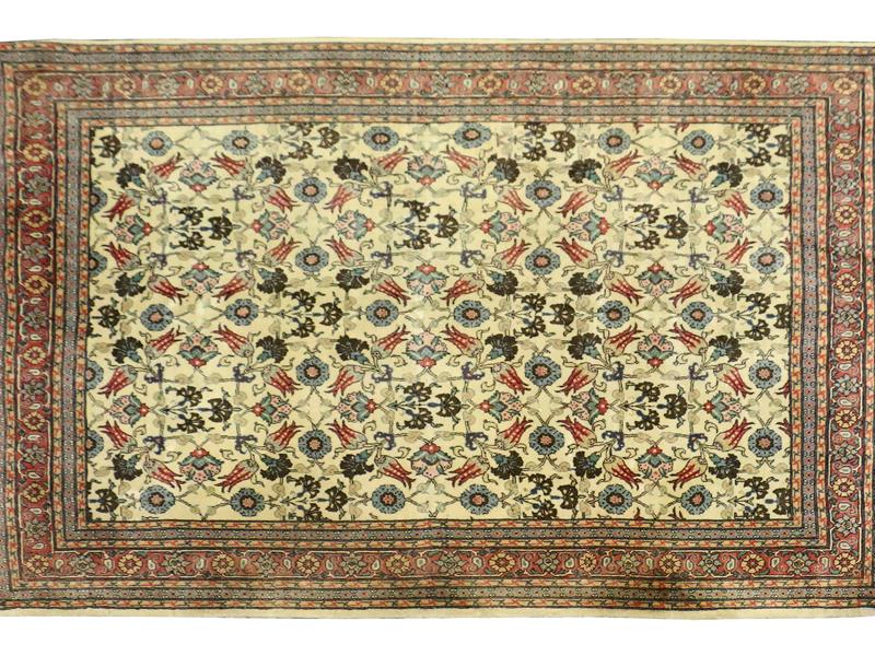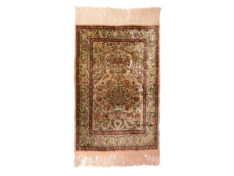 HEREKE. RENKLİ ÇİÇEK MOTİFLERİ VE ESKİ TÜRKÇE YAZILI VE İMZALI. CM2 YE 10X10 İLMEK. 90X62,5 CM.