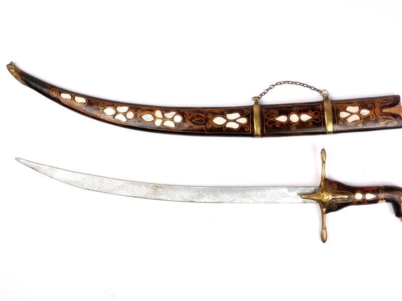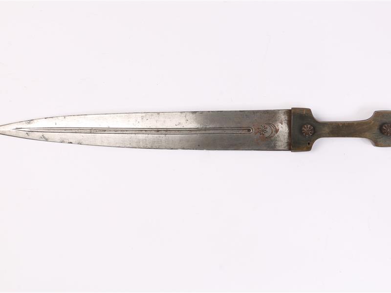 GÖVDE ÜZERİ ESKİ TÜRKÇE AMELİ SABRİ 1308 YAZILI VE AY YILDIZ DESENLİ. KINI YOK. UZ 47 CM.