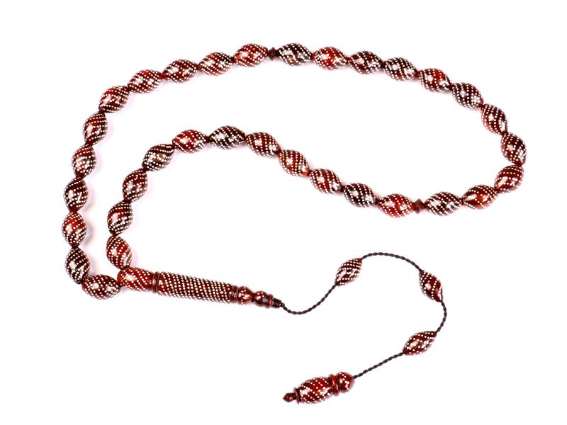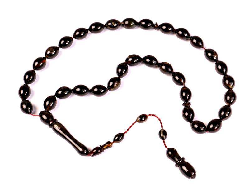 ATEŞİ SIKMA KEHRİBAR. ARPA KESİM. 33 LÜK. UZ 41 CM.