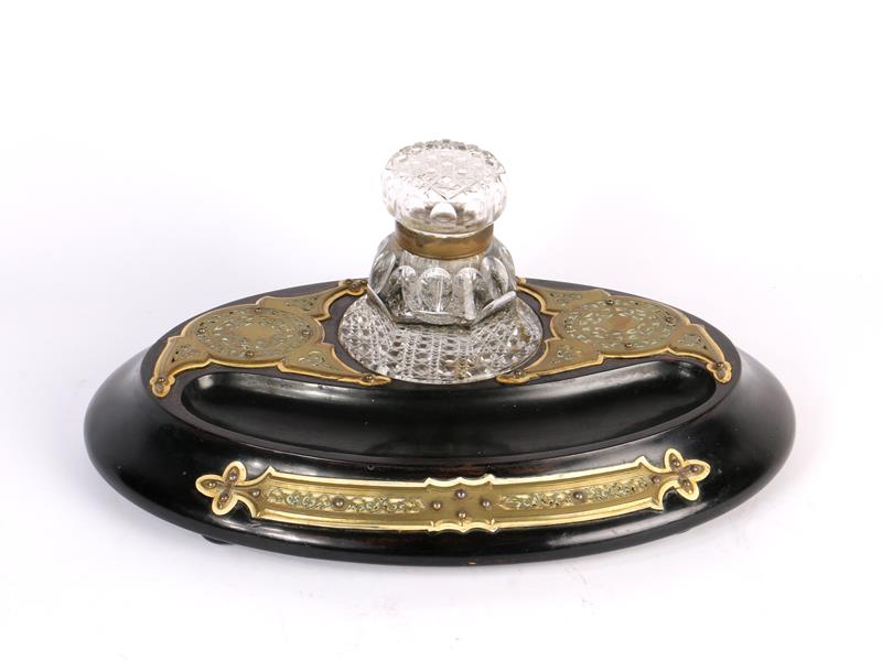 FRANSIZ. OVAL AHŞAP KAİDE ÜZERİNDE TEK KRİSTAL HAZNELİ. ÇOK ZARİF İŞÇİLİKLİ PİRİNÇ APLİKELİ. 33X23 CM. H 15 CM.