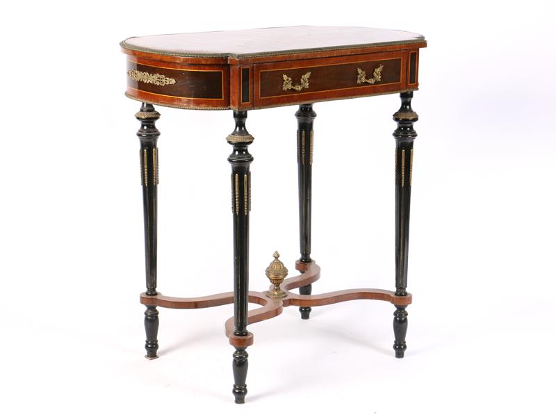 FRANSIZ. MARKÖTERİ İŞÇİLİKLİ. DÖRT ORTADAN BAĞLANTILI AYAK ÜZERİ, TEK ÇEKMECELİ. BRONZ APLİKELİ. 68X40X70 CM.