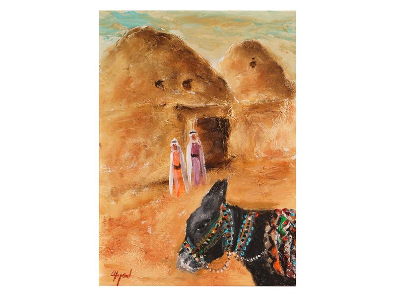 HARRAN DAN. PRESTUAL ÜZERİ AKRİLİK. İMZALI. 2002 T. 36X25 CM.