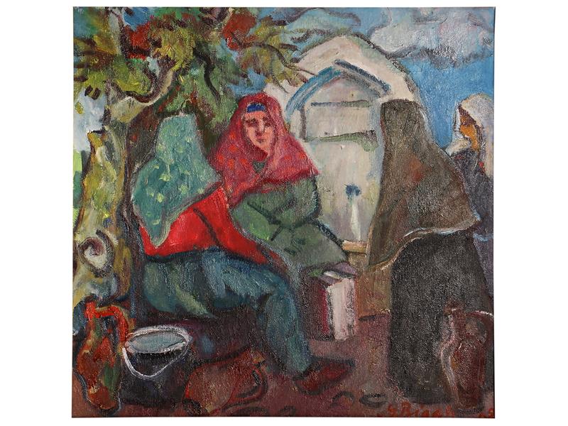 ÇEŞME BAŞI. TUAL ÜZERİ YAĞLIBOYA. İMZALI. 2002 T. 40X40 CM.